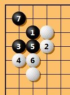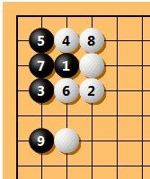 Ich dachte, durch Kosumi auf Schwarz 3 wird daraus ein Starpoint-Invasionsjoseki, bei dem Schwarz sicher lebt, aber meine Erinnerung kann mich täuschen.